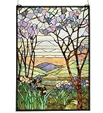 29 Inch W 40 Inch H Tiffany Magnolia & Iris Window WindowsColor Theme: Bapa Purple/Blue Pink Jana Japb Avocado Purple/BlueCollection: Victorian Tiffany Floral Art GlassMeydas interpretation of louis fort tiffanys magnolia and iris window is made using hand cut glass individually wrapped in copper foil. A beautiful selection of stained art glass in neutral tones of earth browns verdant greens and majestic purples were hand selected to create this masterpiece. A solid brass hanging chain and brackets are included.