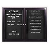 | ✚✚✚ 36"H x 48"W Indoor Enclosed Changeable Letterboard, 2 Doors, Bronze Aluminum Frame Finish Enclosed Changeable Letter Boards keep your announcements, listings and directories secure behind shatter-resistant hinged doors equipped with disc tumbler locks. An attractive letter panel with precision grooves provides a long-lasting background for your messages and makes it easy to insert letters.::Our special outdoor unit features a tough vinyl letter panel, weather-resistant backing, and durable aluminum framing to withstand the elements for extended periods.