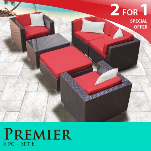 Premier Outdoor Wicker 6 Piece Patio Set Spice Red Covers -06E