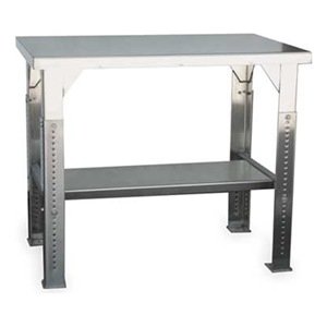 Adjustable Leg Workbench, 96Wx30Dx42In HAdjustable Leg Workbench, Top Width 72 In, Top Depth 36 In, Work Surface 7 Gauge Stainless Steel, Adjustable Height 30 In to 40 In, Straight Legs, Capacity 10, 000 Lb, #304 Stainless Steel Finish, Overall Height 40 In, Overall Width 72 In, Overall Depth 36 In, Max Height 40 In, Min Height 30 In, Includes Top, Legs and Lower Shelf