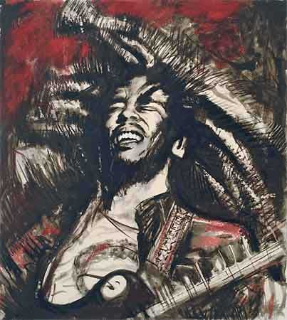Get Up Stand Up - Bob Marley (red) 33" x 29" Screenprint on Paper by Ronnie Wood