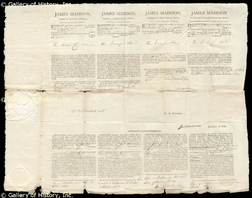| PRESIDENT JAMES MADISON - FOUR LANGUAGE SHIPS PAPERS SIGNED 12/15/1812 CO-SIGNED BY: JOHN GILL, JAMES H. McCULLOCH, PRESIDENT JAMES MONROE #JAMES MADISON, CO-SIGNED BY: JAMES MONROE, JOHN GILL, JAMES H. MCCULLOCH 21x16½ ship's papers for the brig Julia, bound from Baltimore to Lisbon in 1812, signed by Madison as U.S. president and Monroe as Secretary of State Four language ships papers signed "James Madison" as U.S. President, "James Monroe" as Secretary of State, "James M McCulloch" and "John Gill Not. Pub".1 page, 21x16½, with paper 2 ¾-inch Great Seal of the United States and Gill's paper 1¾-inch notary seal affixed on left. Issued at Baltimore, Maryland, Oct. 15, 1812. Four language ship's papers (French, Spanish, English, Dutch) issued to: "Tristram Luce master or commander of the Brig called Julia... lying at present in the port of Baltimore bound for Lisbon and laden with Flour, Indian Corn and Bread for Lisbon..." Brigs were sailing ships with two masts and square sails. The rear sail is the mainsail and has a small fore-and-aft sail to improve maneuverability. Brigs were developed during the 17th century but saw their heyday in the 19th century. They were fast and maneuverable and were used as both military ships with 10 to 18 guns and merchant ships. Brigs were also bigger than schooners, with tonnages up to a hefty 480 tons, making the Julia a relatively small example of the type at 159 tons. They also required more crew for their large riggings. For this reason, brigs were replaced with schooners, and then steam ships, during the 19th century. Lightly toned and creased. All edges are ragged. Bottom edge is tanned. Sheet has been folded vertically ten times and horizontally six times and unfolded. Worn and toned along folds. Pinholes and small tears on edge along folds. For more information contact HistoryForSale. DOCUMENT 32534 PRESIDENT JAMES MADISON - FOUR LANGUAGE SHIPS PAPERS SIGNED 12/15/1812 CO-SIGNED BY: JOHN GILL, JAMES H. McCULLOCH, PRESIDENT JAMES MONROE . FeaturesA memorable & special gift!A unique centerpiece for the home or office!Only 100% Authentic Autographs & Manuscripts - Certificate of Authenticity Provided.UACC Registered Dealer, #RD110 and member of the Manuscript Society!Fast Worldwide shipping! PRESIDENT JAMES MADISON - FOUR LANGUAGE SHIPS PAPERS SIGNED 12/15/1812 CO-SIGNED BY: JOHN GILL, JAMES H. McCULLOCH, PRESIDENT JAMES MONROE?Looking for PRESIDENT JAMES MADISON - FOUR LANGUAGE SHIPS PAPERS SIGNED 12/15/1812 CO-SIGNED BY: JOHN GILL, JAMES H. McCULLOCH, PRESIDENT JAMES MONROE Great Deals, Shop Online, Read PRESIDENT JAMES MADISON - FOUR LANGUAGE SHIPS PAPERS SIGNED 12/15/1812 CO-SIGNED BY: JOHN GILL, JAMES H. McCULLOCH, PRESIDENT JAMES MONROE Product Review, Features, Specs, Description, Check Prices Update & More Satisfactory for This Product Reviews !!! Miscellaneous tips • If you want to buy PRESIDENT JAMES MADISON - FOUR LANGUAGE SHIPS PAPERS SIGNED 12/15/1812 CO-SIGNED BY: JOHN GILL, JAMES H. McCULLOCH, PRESIDENT JAMES MONROE can try to find detailed descriptions and product details. • reading the review, you will provide a much more complete understanding of the advantages and disadvantages of the needed products. • You can try to find a similar item, and sometimes choose to purchase will help. • You may want to try to look up the discussion. • Get the details and information provided for each product. • You can try to find the product features. • In general, as far as I know from the Internet or other PRESIDENT JAMES MADISON - FOUR LANGUAGE SHIPS PAPERS SIGNED 12/15/1812 CO-SIGNED BY: JOHN GILL, JAMES H. McCULLOCH, PRESIDENT JAMES MONROE product Customers who bought the points and shops, shipping, gift ideas, city trading, sales, coupons online, new, holiday, and review, Cheap & Low Prices were interested in best products, including day trading, trading, PRESIDENT JAMES MADISON - FOUR LANGUAGE SHIPS PAPERS SIGNED 12/15/1812 CO-SIGNED BY: JOHN GILL, JAMES H. McCULLOCH, PRESIDENT JAMES MONROE special events, the best deal, discount coupons, best & hot deal, plan, at the last minute deal ... |