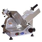 | ✚✚✚ Globe G12 12" Blade Medium-Duty Slicer The G12 Chefmate Medium-Duty Manual Slicer from Globe is great for precision cutting of meats and cheese in both the deli of a grocery store and the kitchen of a restaurant. The G12 slicer features a larger blade and its sleek, modern, rounded corner design allows for easy cleaning. The strong oversized motor power with overload protection is perfect for limited cheese slicing applications. This slicer has a permanently mounted knife ring guard and an interlocked knife cover that disables the slicer when the knife cover is removed. Features: Improved food chute gliding action through superior stainless steel roller bearing design, Top mounted, dual stone, easy turn, all metal knife sharpener, An ideal 35° angle on the food chute. Benefits: New no-volt release relay that prevents inadvertent activation of the slicer, The dual purpose endweight handle with better ergonomic design allows for easier operator motion, improved product grip, and slicing performance, The endweight slides effortlessly, which eases product loading and removal, Larger table adjustment and chute removal knobs for improved grip and better indexing control .