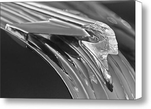 #This is a beautiful stretched-canvas print wrapped on 1.5" thick stretcher bars. The print is professionally printed, assembled, and shipped within 2 - 3 business days from our production facility in North Carolina and arrives ready-to-hang on your wall. Fine Art America is home to more than 75,000 artists from all over the world who entrust us to fulfill their print orders online. We offer a 30-day money-back guarantee on every print that we sell and look forward to helping you select your next piece. Keywords: 1950 Pontiac Chief Canvas Print, Black And White Canvas Print, B & W Canvas Print, Hood Ornament Canvas Print, Hood Ornaments Canvas Print