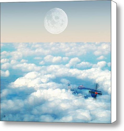 #This is a beautiful stretched-canvas print wrapped on 1.5" thick stretcher bars. The print is professionally printed, assembled, and shipped within 2 - 3 business days from our production facility in North Carolina and arrives ready-to-hang on your wall. Fine Art America is home to more than 75,000 artists from all over the world who entrust us to fulfill their print orders online. We offer a 30-day money-back guarantee on every print that we sell and look forward to helping you select your next piece. Keywords: Clouds Canvas Print, Sky Canvas Print, Moon Canvas Print, Plane Canvas Print, Photograph Canvas Print