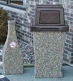 | ✚✚✚ Pebble-Finish Smokers Combo Save $35.00, buy a combo set!Maintain a smoke-free policyNatural stone look will not stain Hartford 30-Gallon ReceptacleConcrete, steel reinforced receptacleAdjustable leg levelers for stabilityIncludes: 2-door plastic dome lid, rigid plastic liner and security cable for attaching lid Pebble-Finish Ash UrnDiscourages unsightly cigarette litterStainless steel access door opens for easy emptying of galvanized pailAvailable with or without No Smoking logo