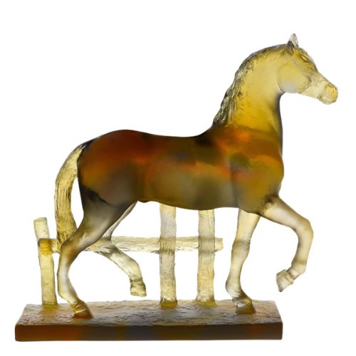 Daum Glass - Animal Sculptures - Trotting Ourasi Horse - Amber/Grey