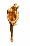 Man, Head on Knee [Kitchen]This fired stoneware piece has been painted with gold leaf, and is available in two sizes. Clyatt has created a beautiful and unique sculpture of a forlorn seated nude that sits comfortably on the edge of any shelf or sill. Small: 17" x 9" x 6" Available in LARGE, please inquire