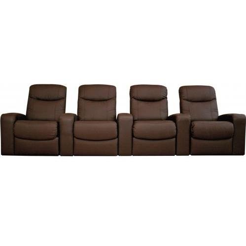 #Talyessin Leather Home Theater Recliner Set Of Four InBrown. 8326 Brown-4Seat. Leather Reclining Sofa. This home theater seating collection is our premier compact home theater seating set. Without losing comfort, the total length is not as wide, making them perfect for smaller home theater rooms or more seating in the same area. These home theater seats contain plush polyurethane foam cushions with hardwood construction frame that is built to last, along with metal structure. Leggett & Platt reclining mechanism and plastic cup holders make these seats as convenient as they are comfortable. Luxurious top grain leather is featured on all the seating surfaces that touch you completes with leatherette on the back and side for longer lasting use and stain resists for easy clean up. The perfect combination of quality craftsmanship with simple and sophisticated designs, that will instantly enhance your viewing experience. Product ships one chair per box with chair backs detached, product assemble with interlocking seat function. Some assembly requires. Whole set measures 131. 5 inches wide x 32 inches deep x 39 inches tall. Seat measures 23 inches wide x 19 inches deep x 19. 25 inches tall. Arm measures 8 inches wide and 23 inches tall. Reclined clearance requires 60. 5 inches deep to fully reclined. Requires 4 inches wall clearance to fully recline and 24. 5 inches front clearance to fully recline. The 8326 Brown-4Seat features a 30 day warranty to ensure that you experience top quality and satisfaction with your purchase.