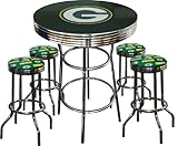 Looking for Green Bay Packers Logo Glass Top Chrome Bar Pub Table Set with 4 Swivel Bar Stools Great Deals, Online shopping, Green Bay Packers Logo Glass Top Chrome Bar Pub Table Set with 4 Swivel Bar Stools Read Product Review, Features, Specs, Description, Check Prices Update & More satisfactory for this item reviews! Green Bay Packers Logo Glass Top Chrome Bar Pub Table Set with 4 Swivel Bar Stools This unique quality bar table set is a done in a Green Bay Packers theme both on the table top as well as on the swivel stools! The material on the stools is a Green Bay Packers fabric with the table also being done with a Green Bay Packers theme. The sturdy table has a glass top which lays upon the themed table surface and comes with stools. The glass is not the only strength of the top but the table also has a thick strong under-layer material as well. The table is 30" across and 42" high with the stools being 29" tall. The glass for this table simply lays upon the table top but it does sit heavy on the table already. You can apply drops of clear silicone adhesive close to the outer edge underside of the glass and table top to further secure the glass in place if you wish. This listing is for four stools and the table! This set is practical and a great conversation piece and we have hundreds of combinations. Contact us if you can't find what you need and we will do our best to accommodate. Be careful when trying to do color matching between your products and ours. Actual colors may vary depending on your computer monitor settings. This listing is part of a new line that we're carrying. We will have more teams and other themes available.