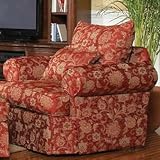 | ✚✚✚ Largo Noble Chair The Largo Noble Chair comes in a crimson color and has a traditional, cottage style for your home. Fabric: 100% Polyester, Jacobean Puckered Jacquard w/a hint of Chenille Frame Construction: Mixed Hardwood, Padded Outside Arms and Backs Springs: Sinuous 8-Gauge Medium Loop Cushion Construction: Pocketed Coil, 1.8 density Back Construction: Loose Back Pillows